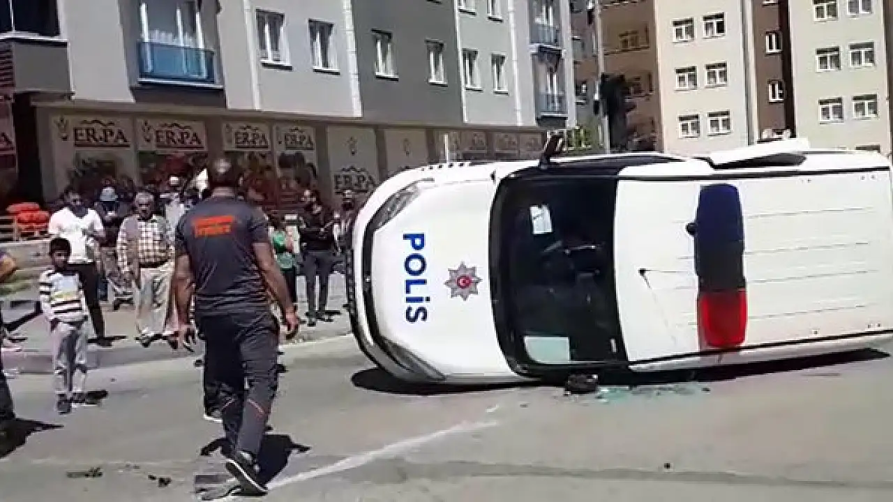 Erzurum'da, ihbara giden polis ekibinin aracı, kavşakta otomobille çarpıştı. 2 polis memurunun hafif yaralandığı kazada yan yatan araç, çevredekiler tarafından düzeltildi.