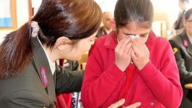 Duygusal buluşmada, sadece mektuplardan tanıdıkları asker ağabeylerine sarılan öğrenciler, göz yaşlarına hakim olamadı.
