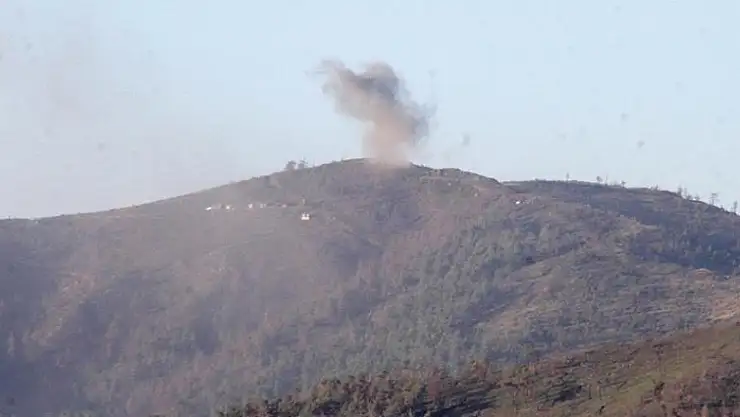 Suriye'de Beşşar Esed rejimine ait birlikler, Lazkiye kırsalındaki Türkmendağı'nı top atışlarıyla vurdu.