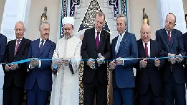 Erdoğan, Esenboğa Havalimanı'nda yapılan caminin ibadete açılış töreninde, TAV şirketine yapımı tamamlanan eserden dolayı teşekkür etti.