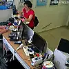 Esenler'de cep telefonu teknik servisine müşteri gibi gelen kadın, iş yeri sahibini oyalayarak, masa üzerindeki cep telefonunu çaldı. O anlar iş yerinin güvenlik kamerasına yansıdı.