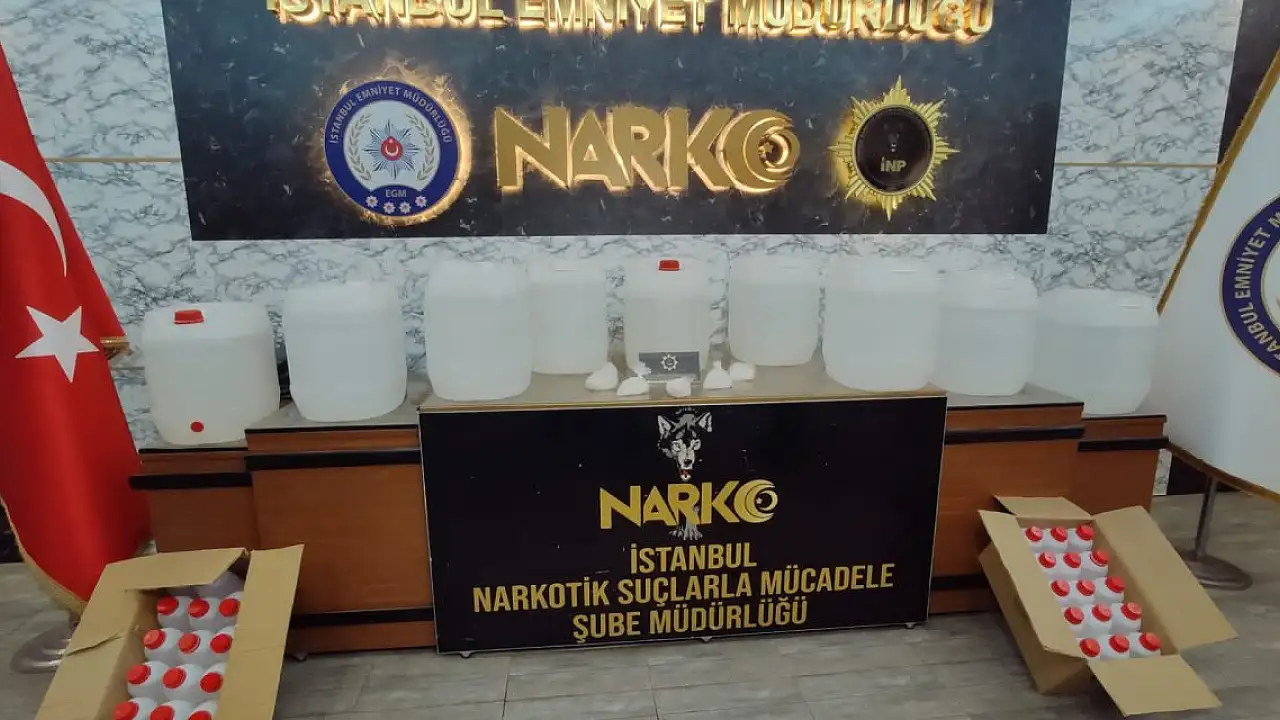 Esenyurt'ta bir adreste uyuşturucu ticareti yapıldığına dair ihbar alan polis, harekete geçti. Eve düzenlenen operasyonda yapılan aramada 228 kilogram 400 gram likit metamfetamin, 520 gram kristal metamfetamin ve 30 litre aseton ele geçirildi. Operasyonda evdeki 2 şüpheli gözaltına alındı. Şüphelilerin emniyetteki işlemleri devam ediyor.