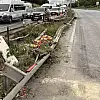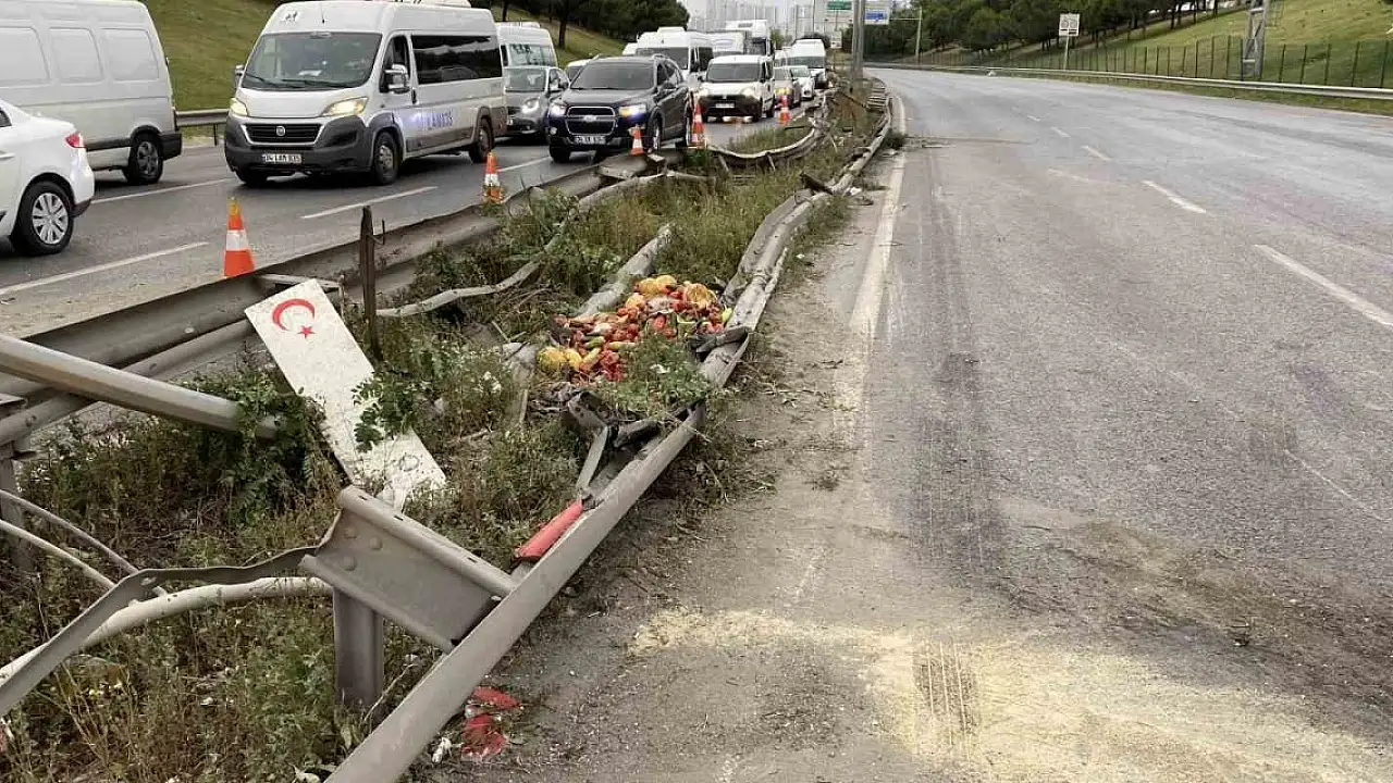 İstanbul Esenyurt'ta sebze yüklü bir kamyon bariyerleri aşarak karşı şeride geçti ve devrildi.