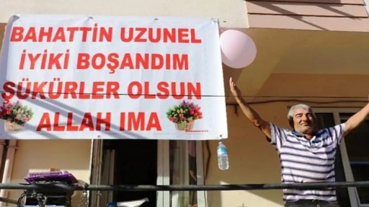 Antalya’da kendisini aldattığı gerekçesiyle eşine boşanma davası açan 55 yaşındaki Bahattin Uzunel, boşandığını ve kendisine yükümlü kılınan tedbirli nafakanın kaldırıldığını öğrenince, sevincini evine astığı ‘İyi ki boşandım, Şükürler olsun Allah’ıma’ pankartıyla kutladı. Üstünel bununla da kalmayıp, komşularına ve pankartı merak edip gelenlere yemek dağıttı.