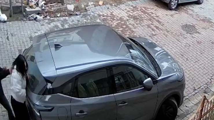 Bilal E. ardından kadını arabanın arkasına sıkıştırarak darbetmeye başladı. Vatandaşların gözü önünde tekme ve yumruklarla saldıran Bilal E., kadına küfür de etti. Kadının bağırarak ağladığı olay sırasında bazı vatandaşların müdahalesi üzerine Bilal E., silahını çekti. Kadının başına silah dayayan Bilal E. ardından çevredeki vatandaşları tehdit etti. Daha sonra aşağı doğru koşarak sokaktan uzaklaşan Bilal E., bir süre sonra gözden kayboldu. Kadının "Polis çağırın, yardım edin" diyerek ağladığı anlar ise güvenlik kamerasına saniye saniye yansıdı.
