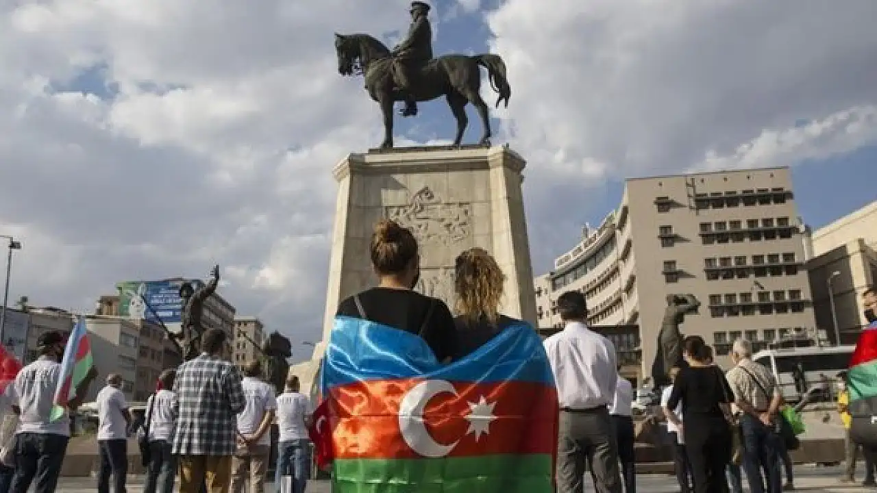 Ulus'taki Atatürk heykeli önünde toplanan grup, anma etkinliği öncesinde İstiklal Marşı ve Azerbaycan milli marşını okudu.