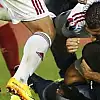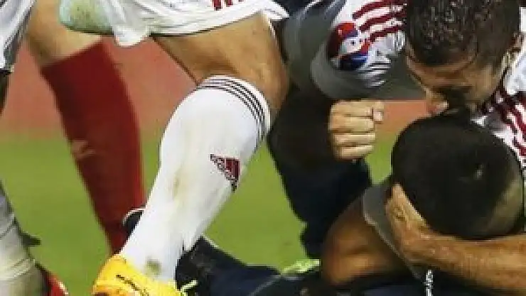 Arnavutluk bayrağının indirilmesinin ardından çıkan olaylarda Cana saha içine giren taraftara yumruk attı.