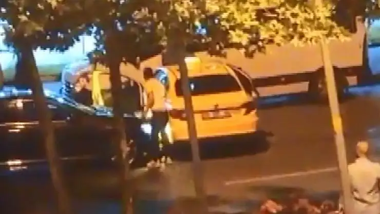 Çevredekiler dehşete düşüren saldırı olayını cep telefonu kamerasıyla kaydetti. Görüntülerde saldırganlar taksiyi çarparak durdurduğu görülüyor. Saldırganlardan birisinin taksinin üzerine çıkıp zıplamaya başlıyor. Diğer saldırgan ise taksi şoförüne hakaret ediyor. Taksicinin polisi aradığını gören saldırgan, şoförün peşinden koşup, tartaklamaya başlıyor. Şüpheliler korkudan taksinin içinde saklanan kadına yeniden saldırıyor.