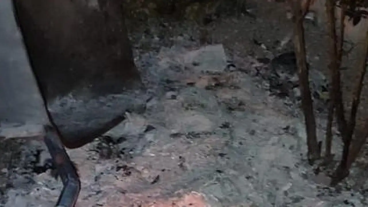 Bahçede bir el arabasında yakmışlar