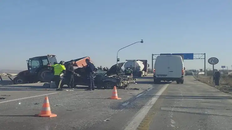 Kaza, Eskişehir-Konya yolu Çifteler ilçesi yakınlarında meydana geldi. Tunç D. yönetimindeki 26 ZH 099 plakalı traktör ile Murat Ö.'nün kullandığı 03 HC 441 plakalı otomobil çarpıştı.