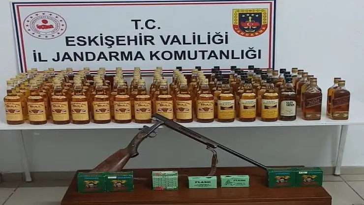 Eskişehir'de bir şahsın bandrolsüz ve hologramsız alkollü içki sattığı bilgisini alan ekipler, adreste yaptıkları armalarda, 92 şişe bandrolsüz içki, 1 adet tek kırma ruhsatsız tüfek ve 141 adet dolu av tüfeği mermisi ele geçirdi.