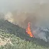Yerleşim yerlerini tehdit etmeyen yangın bölgesinde zaman zaman rüzgar da etkili oluyor.