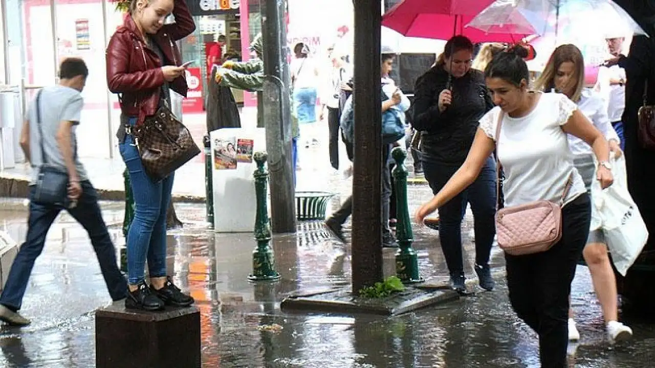 Yağışa hazırlıksız yakalananlar, iş yerlerine sığındı. Bazı kent sakinleri, su birikintilerinin üzerinden atlamaya çalıştı.