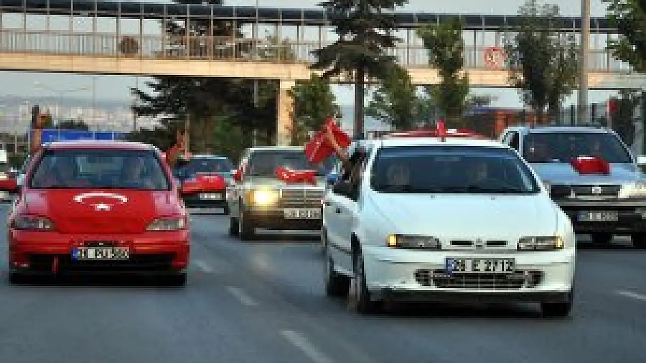 Eskişehir'de, sosyal medya üzerinden haberleşerek bir araya gelen grup, araçlarıyla konvoy oluşturarak terör olaylarına tepki gösterdi.