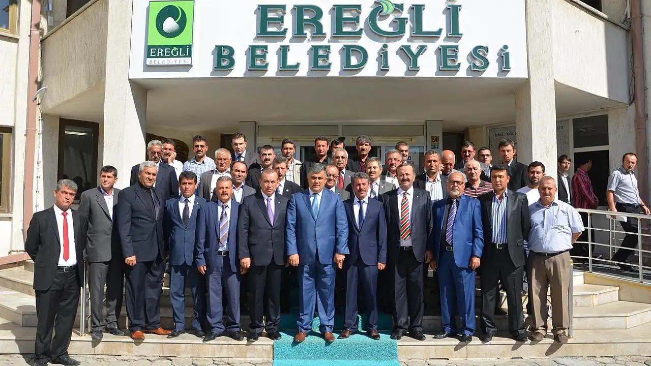 Konya'nın Ereğli ilçesinde Esnaf ve Sanatkar Odaları Birliği, Oda Başkanları ve Ereğli Esnafı 'Ahilik Haftası' dolayısıyla Belediye Başkanı Özkan Özgüven'i makamında ziyaret etti.
