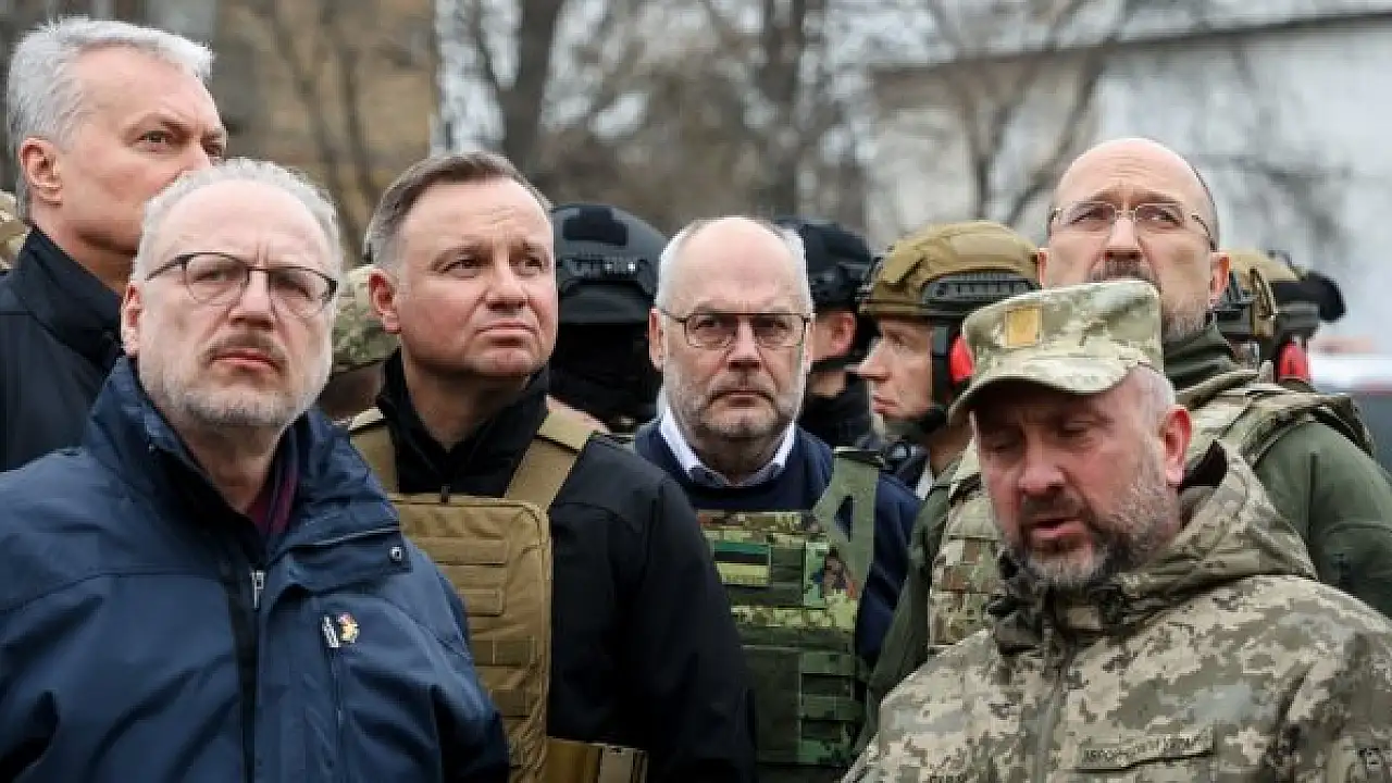 Dün Ukrayna'ya desteklerini göstermek üzere Kiev'e giden Estonya, Polonya, Letonya ve Litvanya liderleri, Ukrayna Başbakanı Denis Şmihal ile görüşerek birlikte Rusya'nın geri çekildiği bölgelerden biri olan Borodyanka'yı ziyaret etti.