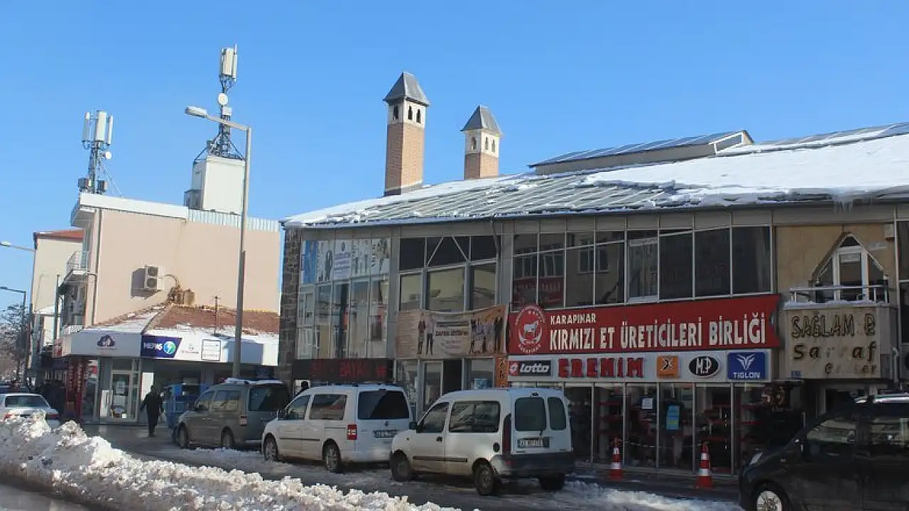 İlçe merkezinde bulunan Selimiye Çarşısı'nın çatısındaki karlar güneş ile birlikte erimeye başlaması ilginç görüntüler oluşturdu.