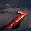 Avrupa'nın en aktif yanardağı olan İtalya'daki Etna bu yıl ilk defa faaliyete geçerken, karla kaplı dağın eteklerinden akan lavlar görsel şölene dönüştü.