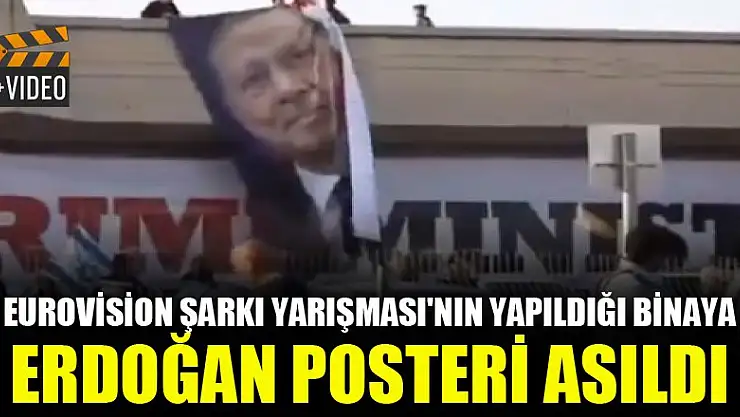 Eurovision Şarkı Yarışması'nın yapıldığı binaya Erdoğan posteri asıldı