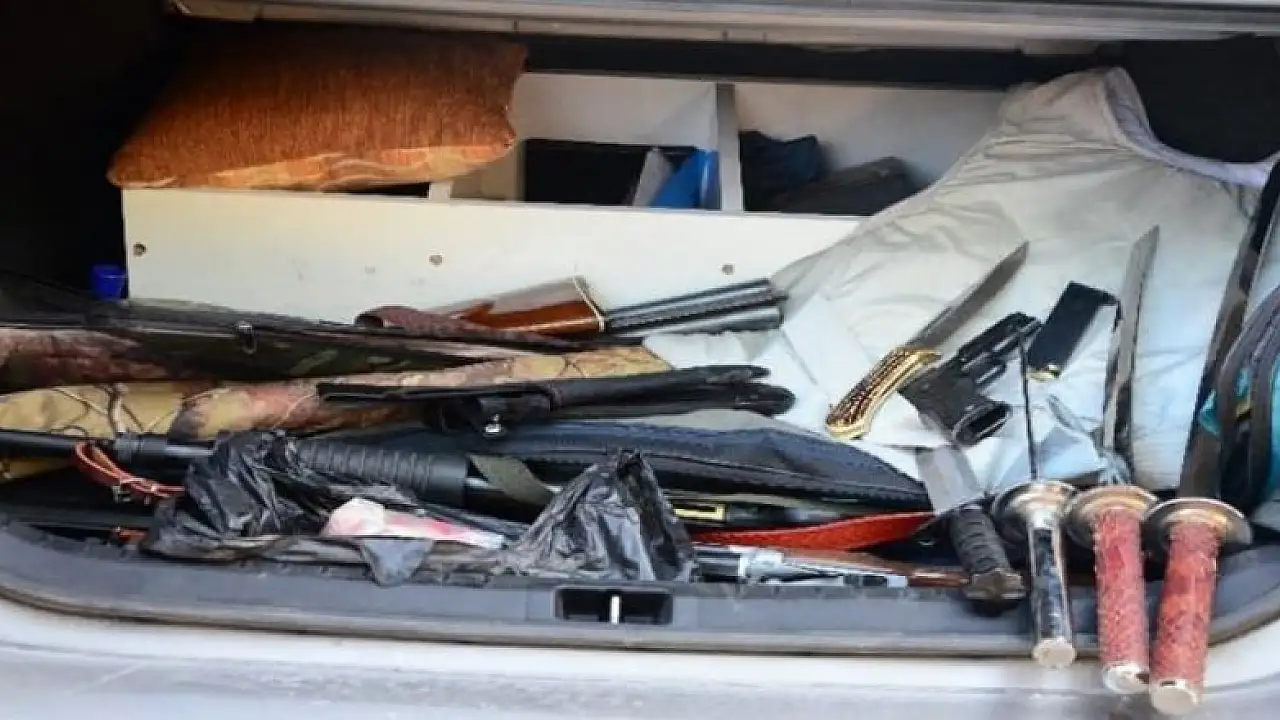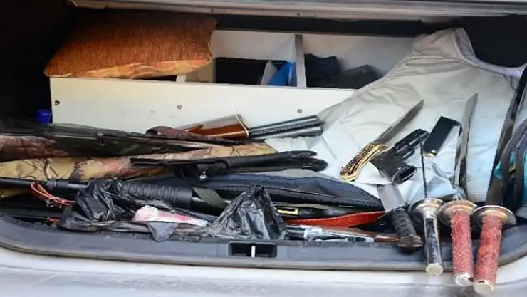 Gaziantep'te polis gerçekleştirdiği şafak operasyonunda, 6 güvenlik kamerası ile gözetlenen bir eve yaptığı baskında çok sayıda silah, kılıç, kama ve bıçak ele geçirdi.