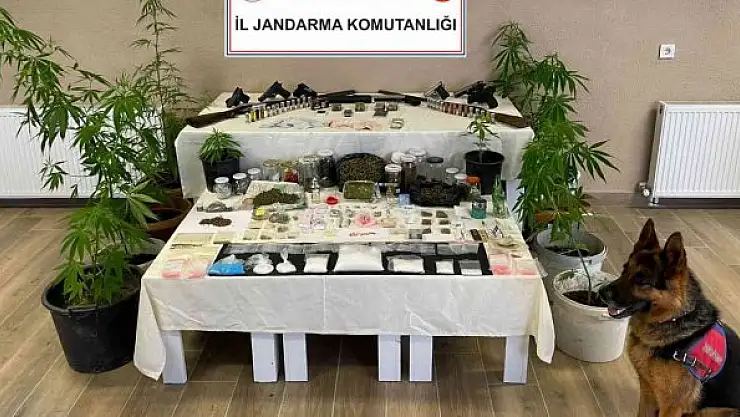 Sakarya İl Jandarma Komutanlığı KOM Şube Müdürlüğü ve Serdivan İlçe Jandarma Komutanlığı ekiplerince yapılan istihbari çalışmalar neticesinde Çubuklu Mahallesi'nde ikamet eden F.B. isimli şahsa ait ev ve eklentilerinde uyuşturucu operasyonu düzenlendi. Yapılan aramalar neticesinde, 2 kilo 100 gram metamfetamin, 5 kilo 500 gram kubar esrar, 700 gram plaka esrar, 280 adet ectasy, 68 captagon, 10 kök kenevir bitkisi, 450 gram kenevir tohumu, 2 adet ruhsatsız tabanca, 3 adet ruhsatsız av tüfeği, 6 adet tabanca şarjörü, 4 adet kurusıkı tabanca, 158 adet 9 milimetre çapında tabanca mühimmatı, 100 adet 9 milimetre çapında kurusıkı tabanca mühimmatı, 47 adet av tüfeği mühimmatı, 3 adet cep telefonu, 9 adet uyuşturucu kullanma aparatı, 6 bin 500 TL uyuşturucu satışından elde edildiği değerlendirilen para ve bin 250 adet uyuşturucu paketlemede kullanılan şeffaf poşet ele geçirildi.