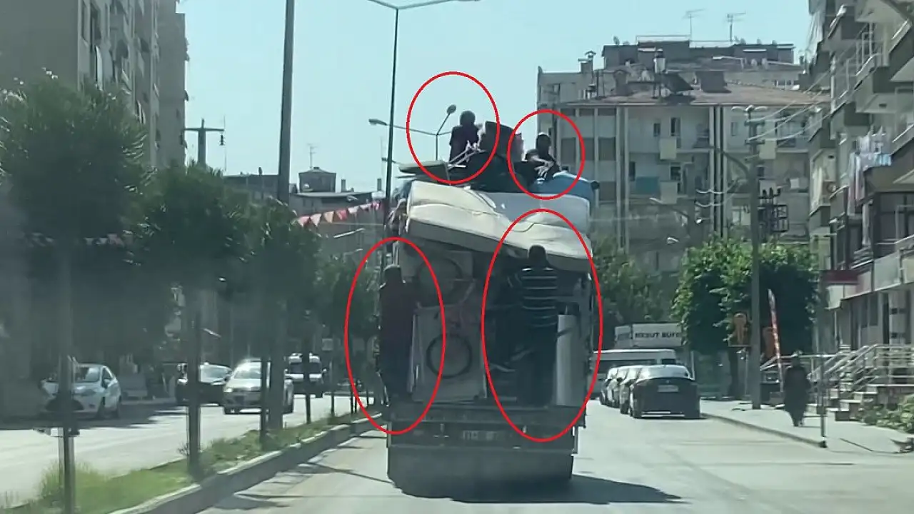 Diyarbakır'ın 4 kişinin ev eşyalarıyla dolu kamyonetteki tehlikeli yolculuğu çevredekiler tarafından görüntülendi.Bağlar ilçesi Mevlana Halit Mahallesi'nde, plakası öğrenilemeyen ev eşyası yüklü bir kamyonetin kasasında 4 kişi olduğu görüldü. 2 kişi eşyaların üzerine diğer 2'si ise iple bağlı kısmını tutarak kamyonette ilerledi. Tehlikeli yolculuk diğer sürücülerin de tepkisini çekti. O anlar ise kameraya yansıdı.