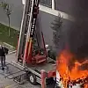 Alevleri fark eden site sakinleri ve eşya taşıma görevlileri, zamanla yarışarak eşyaları vinçten tahliye etmeye başladı. İtfaiye ekipleri gelene kadar bazı vatandaşlar, su dolu damacanalarla yangını söndürmeye çalıştı. O anlar cep telefonu kameralarına yansıdı.