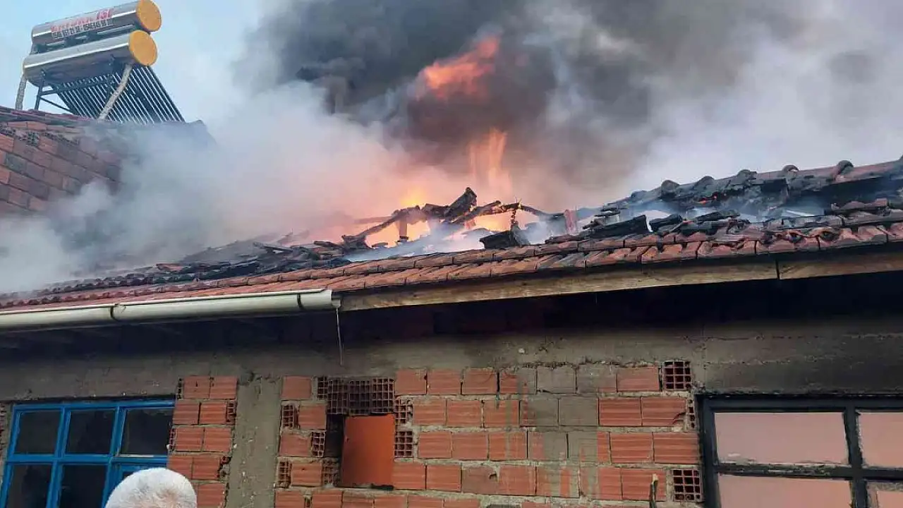 Kütahya'nın Gediz ilçesinde bir ev çıkan yangında alevlere teslim olarak kullanılamaz hale geldi.