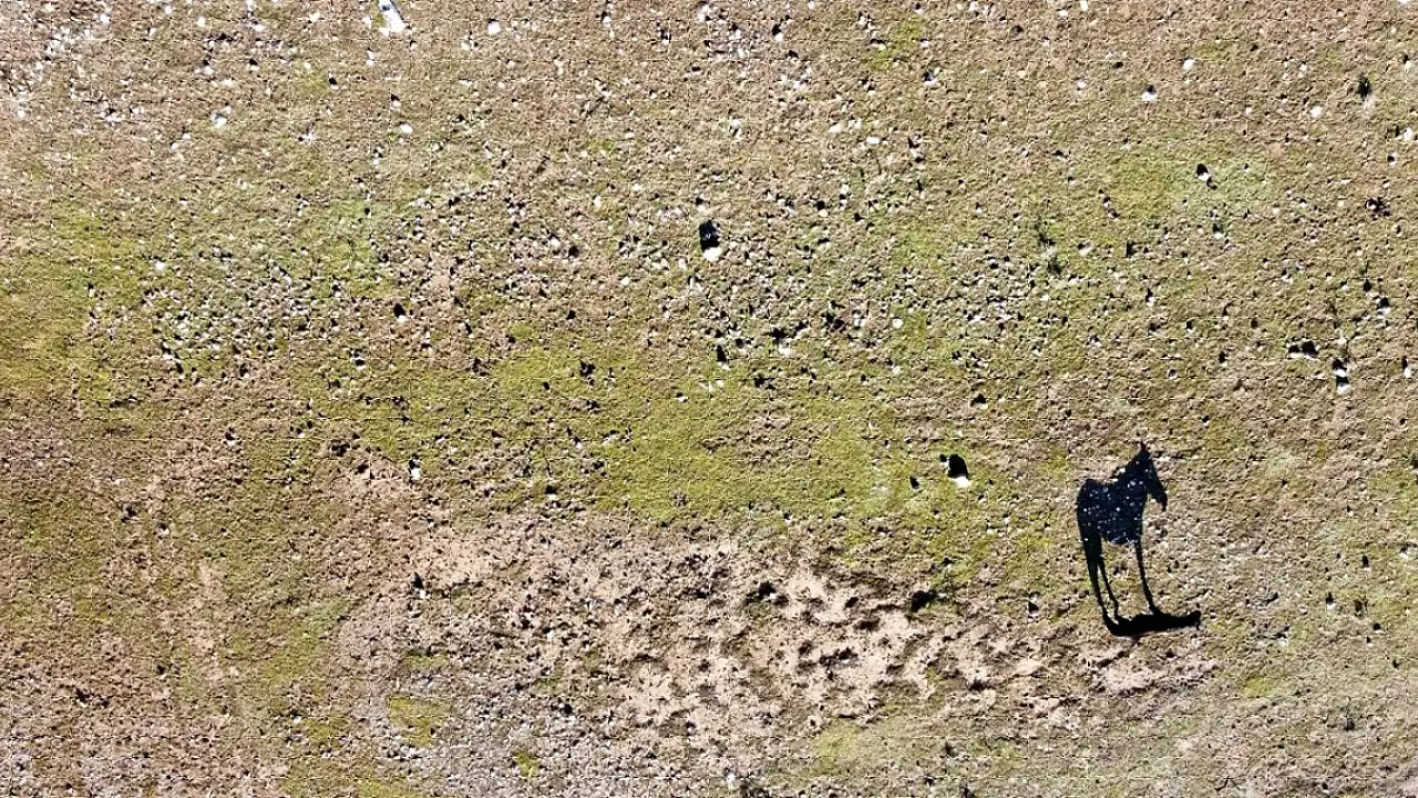 Çayırların dik yamaçlarla çevrildiği doğa harikası yerde sürüler halinde yaşayan atların havadan görüntülendiği ova, güneşli günde yeşilliğiyle baharı adeta erkenden müjdeliyor.