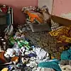 Sabah 09.00'da temizlenmeye başlanan evden 4 kamyon çöp çıkarıldı. Osmangazi Belediyesi temizlik ekipleri, evde bulunan çöpleri atarken, elektronik cihazlar, dolap ve şahsi eşyalara dokunmadı. Saatler süren temizliğin ardından boşaltılan ev ilaçlandı.