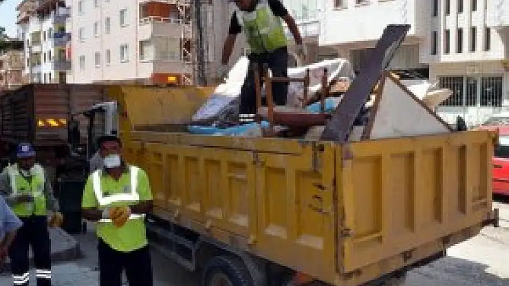 Zabıta ekiplerince temizlenen ev daha sonra hastalıklara karşı ilaçlanarak, dezenfekte edildi.