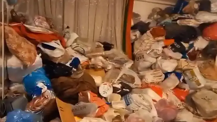 Daireden, 16 kamyon çöp çıktı. Taşınan çöpün yaklaşık 50 ton olduğu bildirilirken, Bülent K. hastanede sağlık kontrolünden geçirildi.