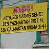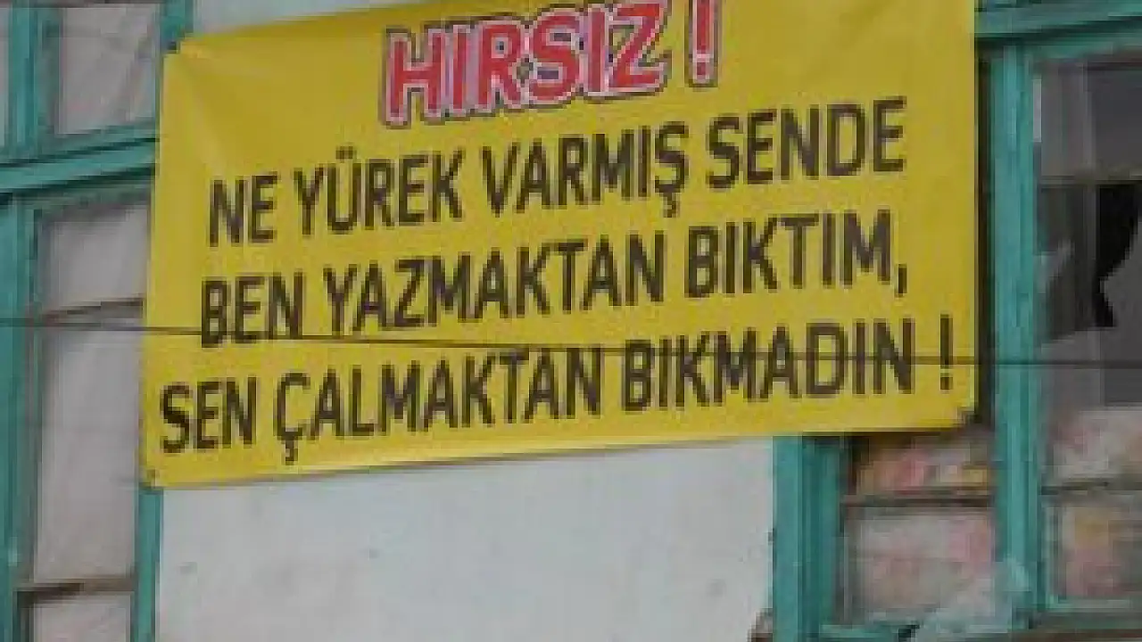 ''Bundan sonra ne götürecekler bilmiyorum. Bıktım artık. Kalp krizi geçireceğim diye korkuyorum. Hırsızla baş edemeyince ikinci kez pankart asmaya karar verdim. Benden ne istiyorlar, onu anlayamadım. Not bıraksın gitsin, geldiğinde ne istiyorsa onu vereyim. Ama artık beni rahat bıraksın. Malda mülkte değilim, eve girmeye korkar hale geldim.''