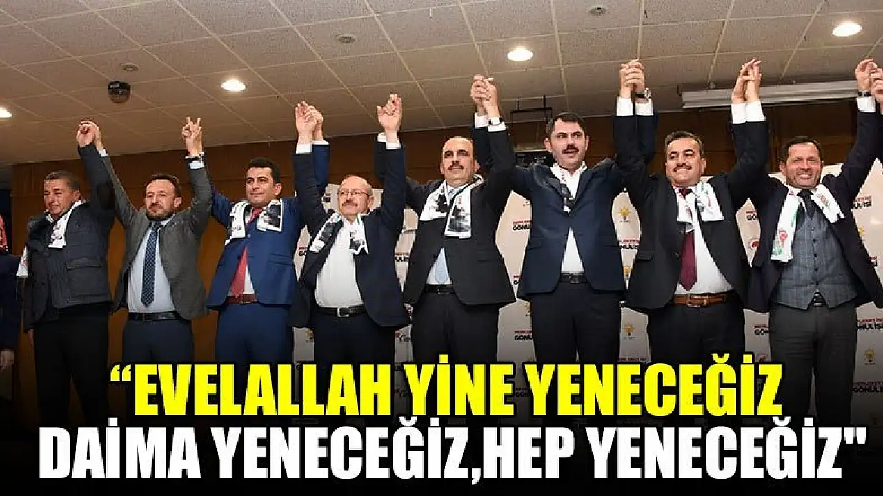 Çevre ve Şehircilik Bakanı Murat Kurum, "CHP'den bir isim şöyle söylemişti, 'Şaşıyorum arkadaş. Tayyip Erdoğan seçimden yüzde 52 almış, birinci olmuş, hala 'neden yüzde 58 alamadım' diye araştırıyor. Biz CHP olarak, 14 parti birleştik yüzde 38 aldık, kimseden ses yok, seda yok. Adam her seçimde yenmiş, yenmiş de yenmiş, çıkmışsın yenmiş, yenmiş de yenmiş, yenmiş de yenmiş.' Merak etmesinler. Evelallah yine yeneceğiz, daima yeneceğiz, hep yeneceğiz, durmadan yeneceğiz. Çünkü biz milletimize sevdalıyız, çünkü biz milletimize aşığız." dedi.