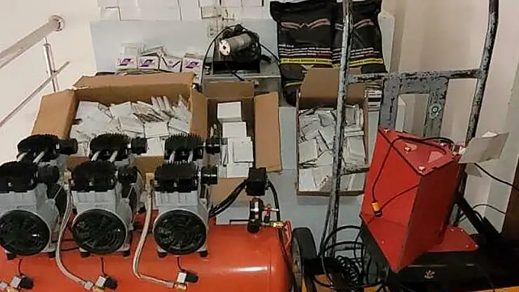 Muğla İl Emniyet Müdürlüğü Kaçakçılık ve Organize Suçlarla Mücadele Şubesi Fethiye Grup Amirliği ekipleri, bir evde kaçak sigara imalatı yapıldığı bilgisine ulaştı. Harekete geçen ekipler tespit edilen eve operasyon düzenledi. Polisin evde yaptığı aramada 2 elektrikli sigara basma makinesi, 2 kompresör makinesi, 21 bin gümrük kaçağı boş makaron, 1200 içi tütün basılı makaron ve 7 kilogram gümrük kaçağı tütün ele geçirilirken, A.T. (49) gözaltına alındı. Olayla ilgili soruşturma başlatıldı.