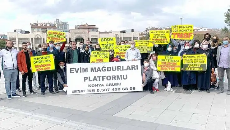 2 Temmuz 2021 günü sayısı 21 olan faizsiz finans şirketleri için Cumhurbaşkanlığı oluru ile resmi gazetede yayımlanarak BDDK tarafından tasfiyesine karar verilen faizsiz finans sisteminin mağdurları Kılıçarslan Meydanı’nda toplanarak seslerini duyurmaya çalıştılar. Evim Mağdurları Platformu adına açıklama yapan Asım Özkaradayı, “Herkesçe malum olan ve halk dilinde evim şirketleri olarak bilinen faizsiz finans kurumları ülkemizde 30 yılı aşkın süredir ticari hayatlarına devam ediyorlar. Faizsiz finans sistemi üzerine ticari faaliyetlerini sürdüren bu şirketler için alınan tasfiye kararı ülke genelinde mağduriyet yaşanmaması adına alınmış olsa da tasfiye sürecinden sorumlu olan devlet kurumları BDDK ve TMSF kapalı kapılar ardında şeffaf olmadan ve mağduriyetleri göz önünde bulundurmadan bizleri, birikimlerimizi ve alın terimizi bununla beraber kanuni bütün haklarımızı yok saymaktadır. Aniden alınan tasfiye kararı özellikle biz mağdur durumda bırakılan üyeler için hiçbir hak ve menfaat gözetilmeden yapılması sonucu 54 bin kişilik bir mağdur ordusu ortaya çıkarmıştır. Konya’ dan bir kez daha sesleniyoruz. Devletimizden beklentimiz şudur bizleri BDDK VE TMSF’nin insafına bırakıp alın terimizin yok edilmesine göz yummasın” dedi.