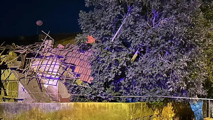 Tek katlı evin çatısında göçük meydana gelirken, gürültüyü duyan anne ve kızı hızlıca evden çıkarak kurtuldu.