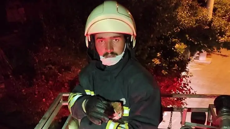 İhbarı değerlendiren Konya Büyükşehir Belediyesi itfaiye ile polis ekipleri olay yerine gelerek merdivenli araçla evin çatı katına ulaşarak kediyi bulunduğu yerden kurtardı.