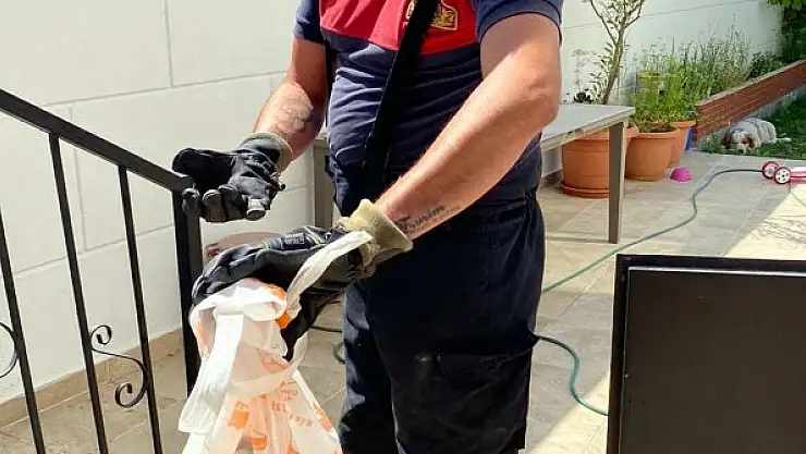 Evin deposuna giren yılanı itfaiye yakaladı