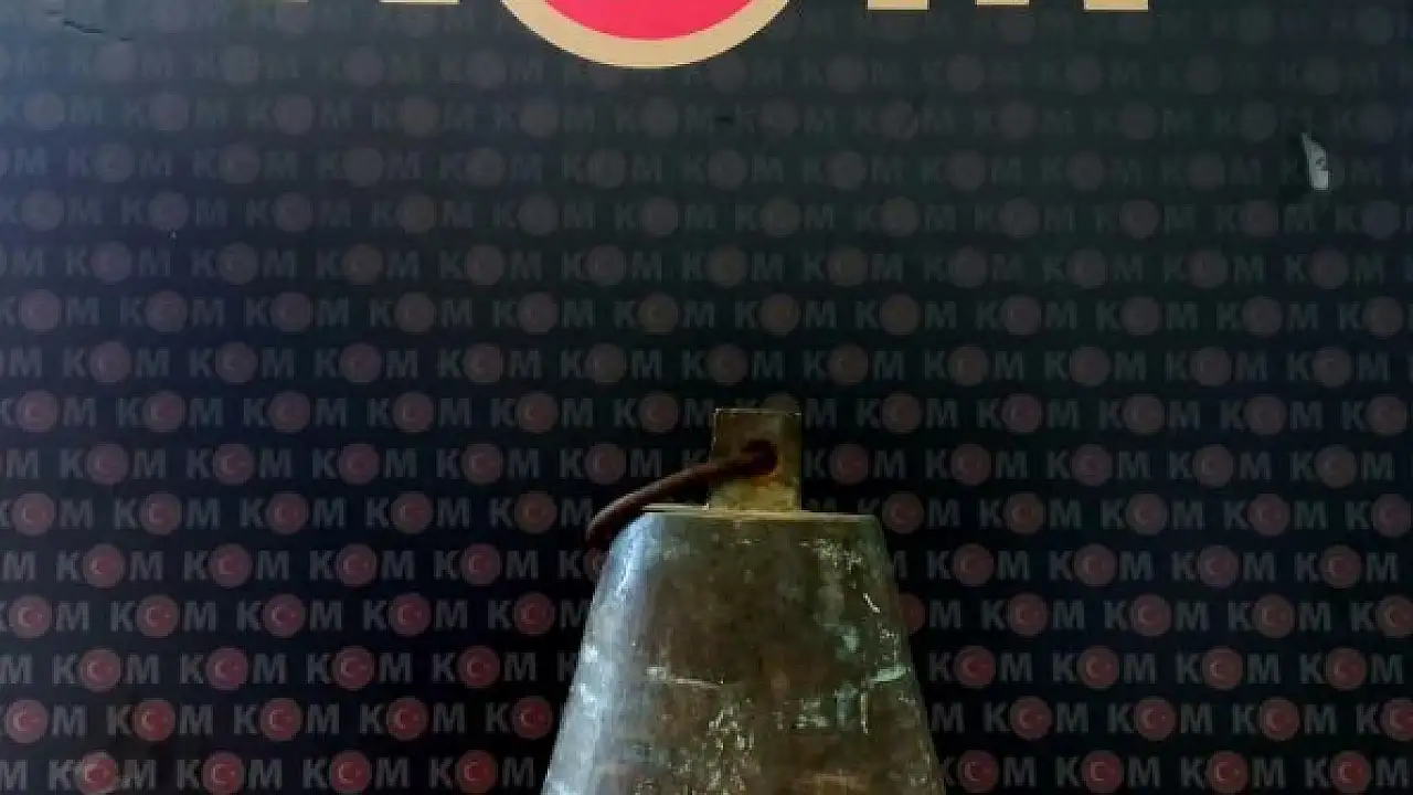 ÇANAKKALE'de polis ekipleri, şüpheli S.E.'nin evinde yaklaşık 200 yıllık olduğu değerlendirilen bir kilise çanı ele geçirdi.