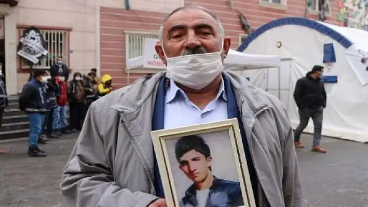 Fevzi Yağmur, oğlu Kenan'ın fotoğrafını eline alarak evlat nöbetinin sürdüğü çadıra gelerek eyleme katıldı.