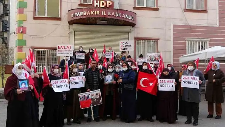 Çocuklarının terör örgütü PKK tarafından dağa kaçırıldığı iddiasıyla HDP Diyarbakır İl Başkanlığı önünde evlat nöbeti tutan ailelerin direnişi, devam ediyor, sayıları 269'a çıktı.