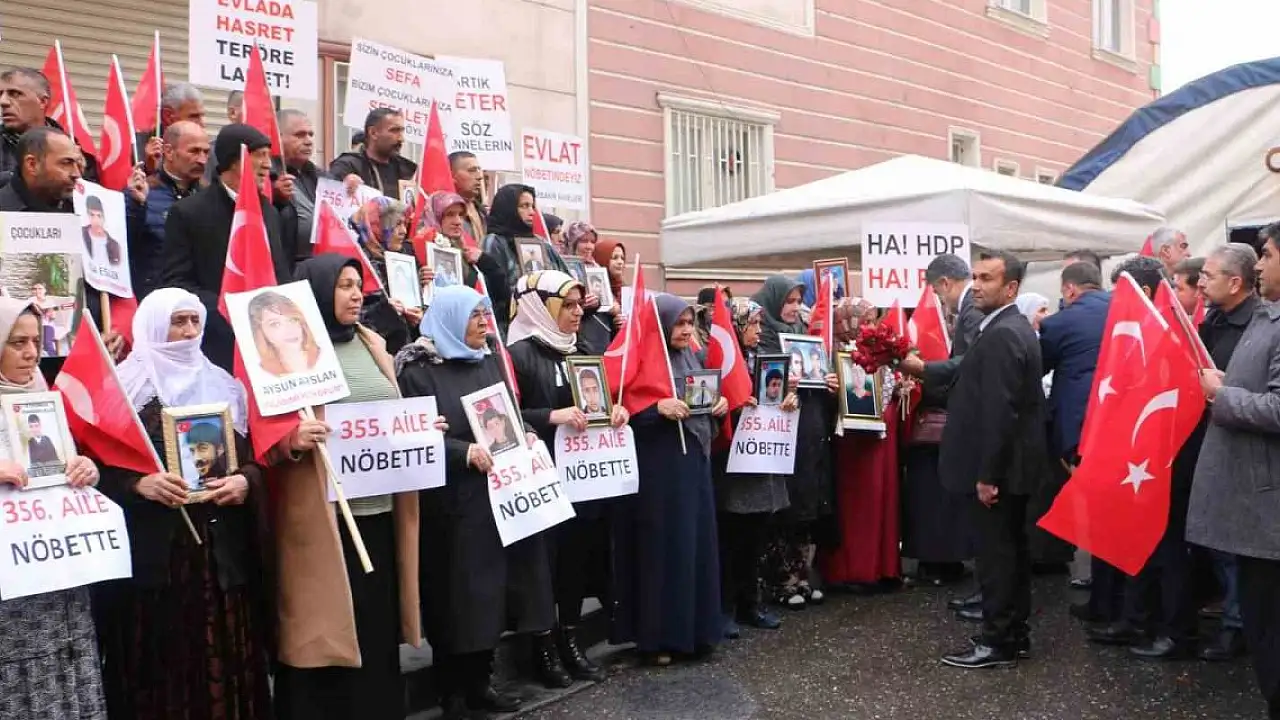Farklı şehirlerden 3 Eylül 2019'da Diyarbakır'a gelerek HDP il binasının önünde oturma eylemi başlatan ailelerin evlat nöbeti bin 245'inci gününde de kararlılık devam ediyor. Bugüne kadar 354 aile nöbete katılırken, bunlardan 39'u evladına kavuştu. Bugün ise İstanbul'dan gelen iki ailenin katılımıyla sayı 356'ya yükseldi.
