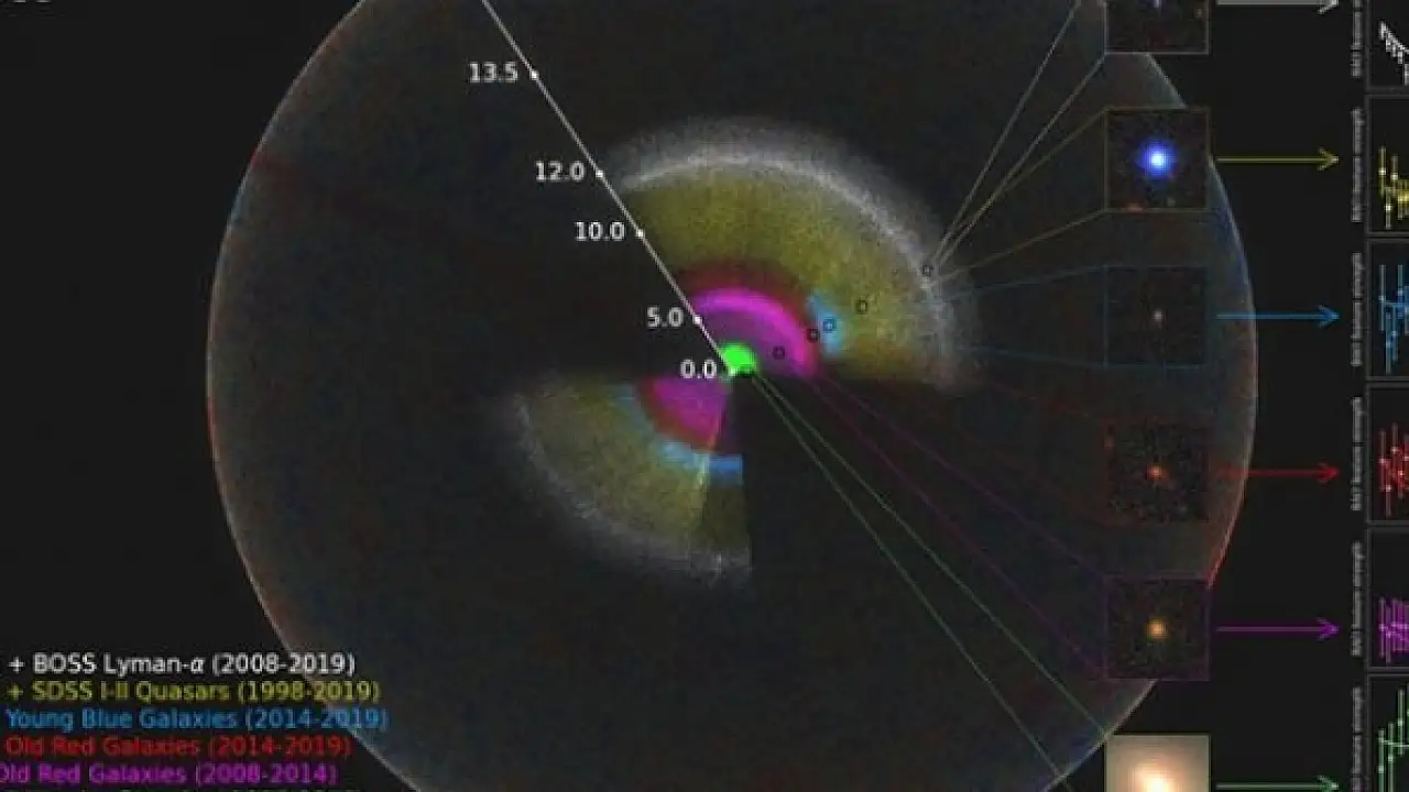 Genişletilmiş Baryon Salınım Spektroskopik Araştırması, bir başka deyişle "eBOSS" adı verilen ortak çalışmada, evrenin daha önceki haritalarının önüne geçmek için yıldıza benzer gök cisimleri ve sönük galaksiler kullanıldı.