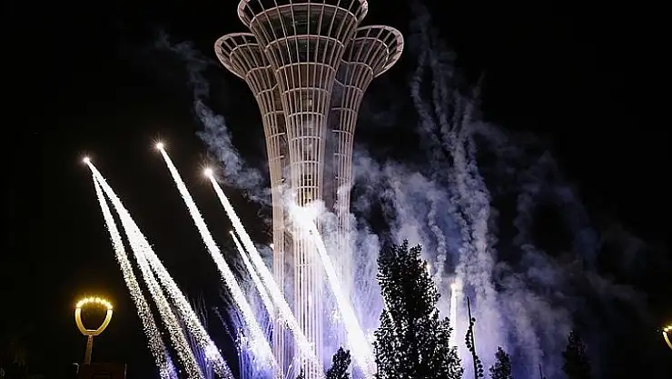 'Türkiye'nin Eyfel'i' olarak adlandırılan 100.7 metre yüksekliğindeki EXPO 2016 Kulesi'nde gerçekleştirilen havai fişek gösterisi yerli ve yabancı turistler tarafından ilgiyle izlendi.