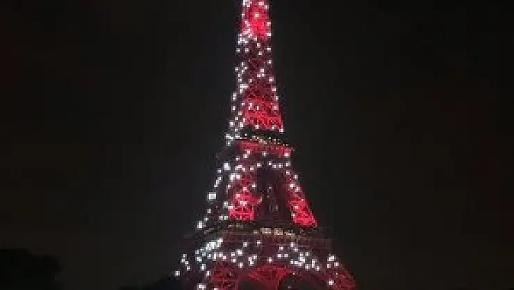 Fransa'nın simgelerinden, başkent Paris'teki Eyfel Kulesi Türk bayrağının renkleriyle ışıklandırıldı.