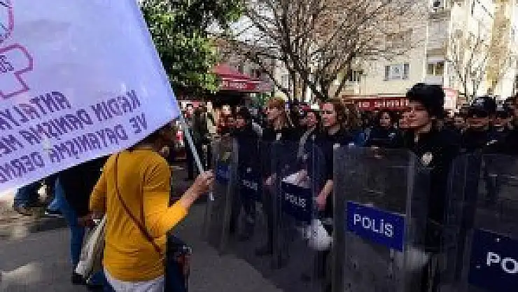 Antalya'da, 8 Mart Dünya Kadınlar Günü dolayısıyla şiddete dikkat çekmek amacıyla kadınların düzenlediği eylemde, güvenlik önlemlerini kadın polisler aldı.