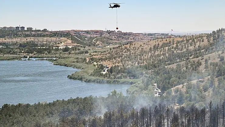 Ankara'da Eymir Gölü yakınlarındaki ormanlık alanda çıkan yangın söndürülmeye çalışılıyor.