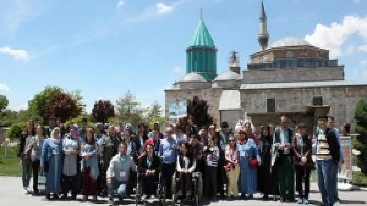 Eyüp Belediyesi tarafından Konya'ya düzenlenen gezide, belediye bünyesinde eğitim gören Engelliler Sürekli Eğitim Merkezi (ESER) ile Şeker Hayat öğrencileri ve aileleri Mevlana Türbesini ziyaret etti.