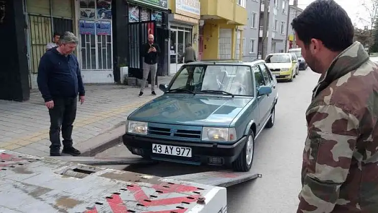 Ali Yumuk, aylarca gözü gibi baktığı aracını çekiciye yükleyerek yeni sahibine ulaştırdı.